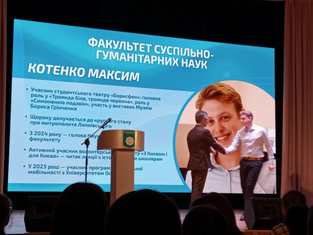 Родзинкою святкового заходу стало нагородження іменною грінченківською стипендією нашого студента 3 курсу спеціальності «Історія та археологія» Котенка Максима Олександровича. Ми щиро вітаємо голову Наукового товариства САМВ та активного учасника багатьох івентів, організованих Факультетом, зокрема заходів проекту «З Києвом та для Києва» з високим визнанням і відзначенням нагородою. Щасти!