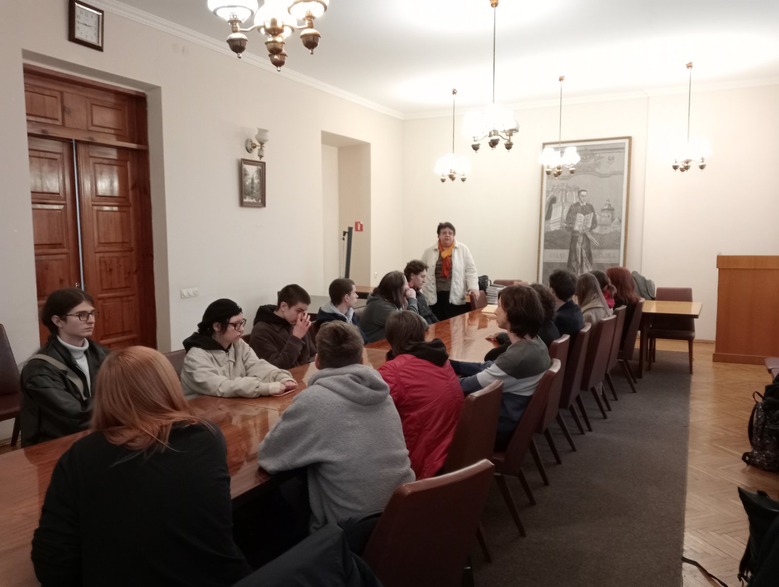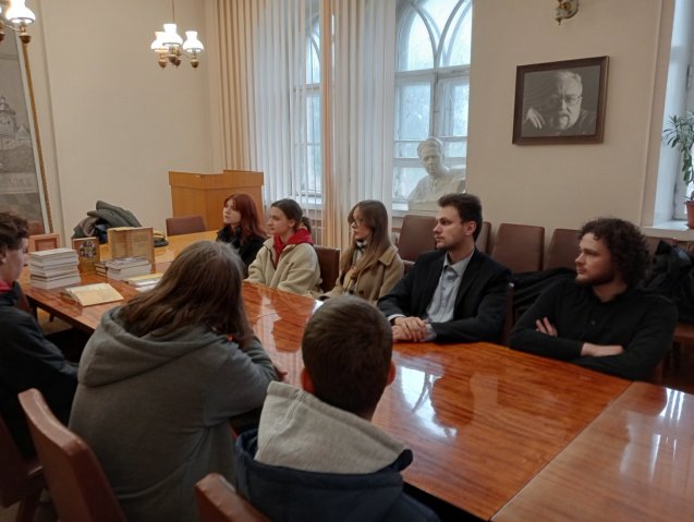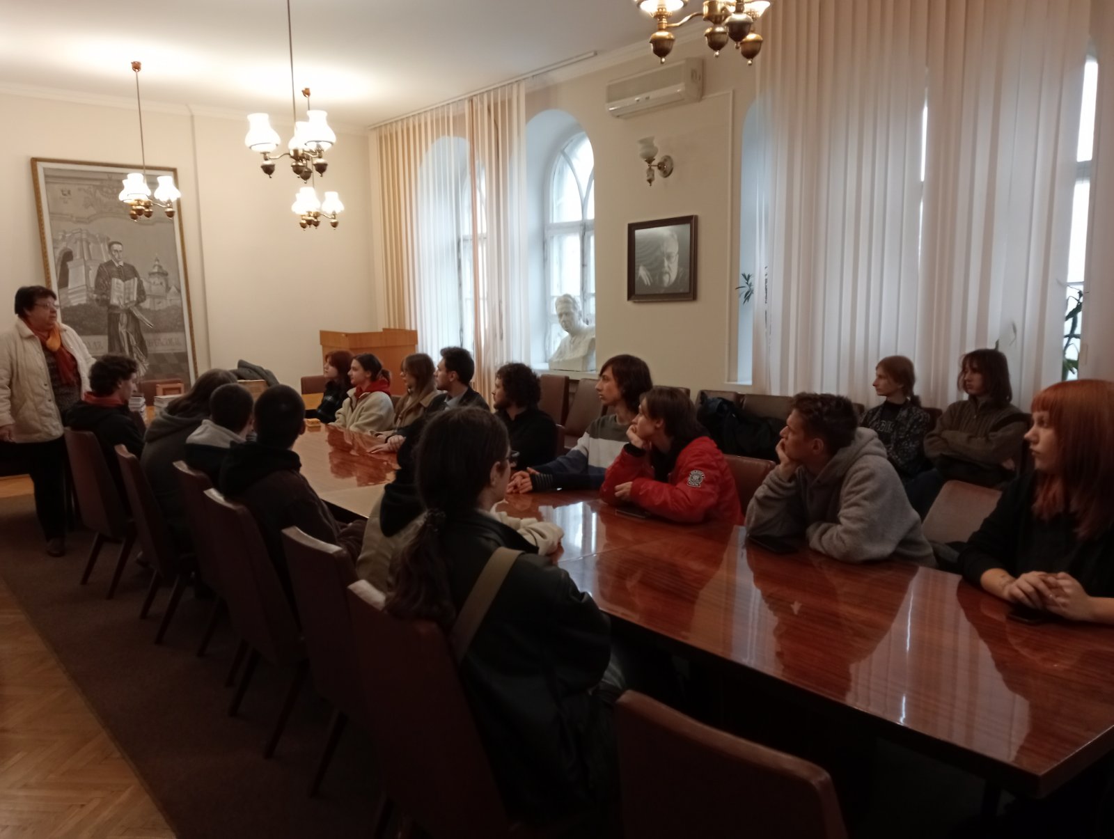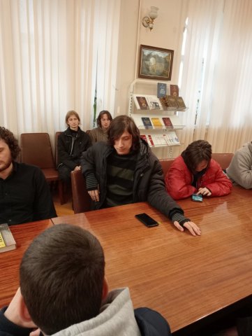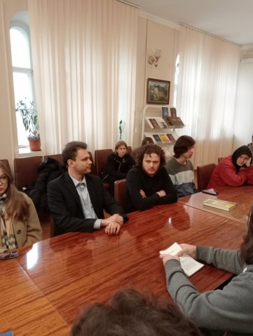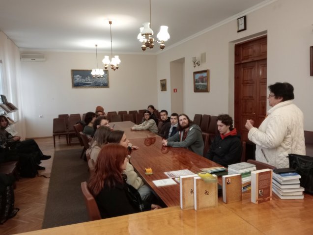 24 жовтня 2025 р. традиційно двері для наших студентів-першокурсників відкрив Інститут філософії НАНУ ім. Г.С. Сковороди. Відчути науково-дослідницьке середовище, поспілкуватися з метрами філософської науки, познайомитися з фаховою літературою якнайкраще презентує виїзне заняття з дисципліни "Університетські студії: вступ до спеціальності". І тут без неоціненної допомоги професора Людмили Филипович нічого б не відбулося би. Величезна подяка п. Людмилі за участь у практикоорієнтованому навчанні наших студентів.