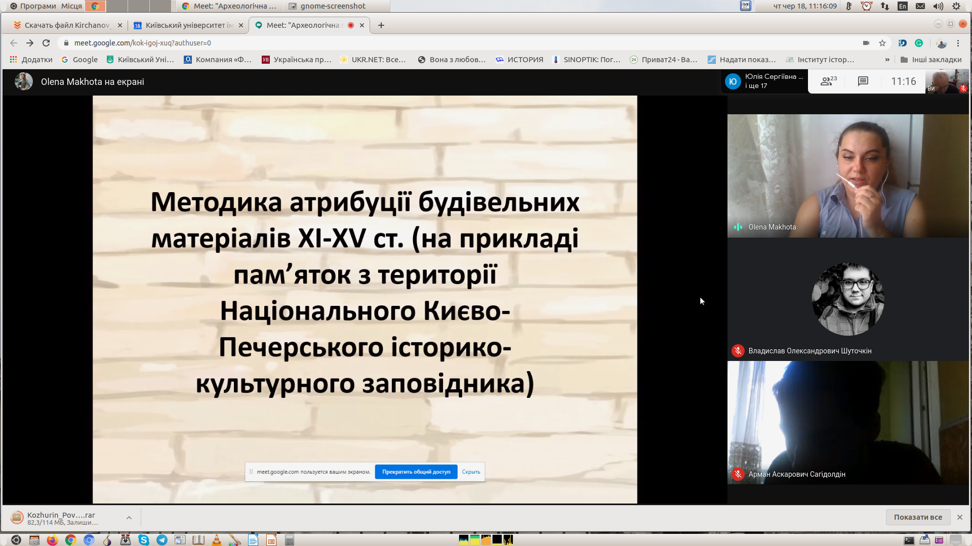 У 2016 році практика проводилась у Вишгороді і Києво-Печерському історико-культурному заповіднику. Археологічні дослідження у Лаврі проводились на території Митрополичого саду на основі попередніх георадарного сканування. Було з’ясовано територіальні межі Печерського заповідника домонгольської доби. Студентами була освоєна нова технологія - флотація й промивання як методи археологічних досліджень.