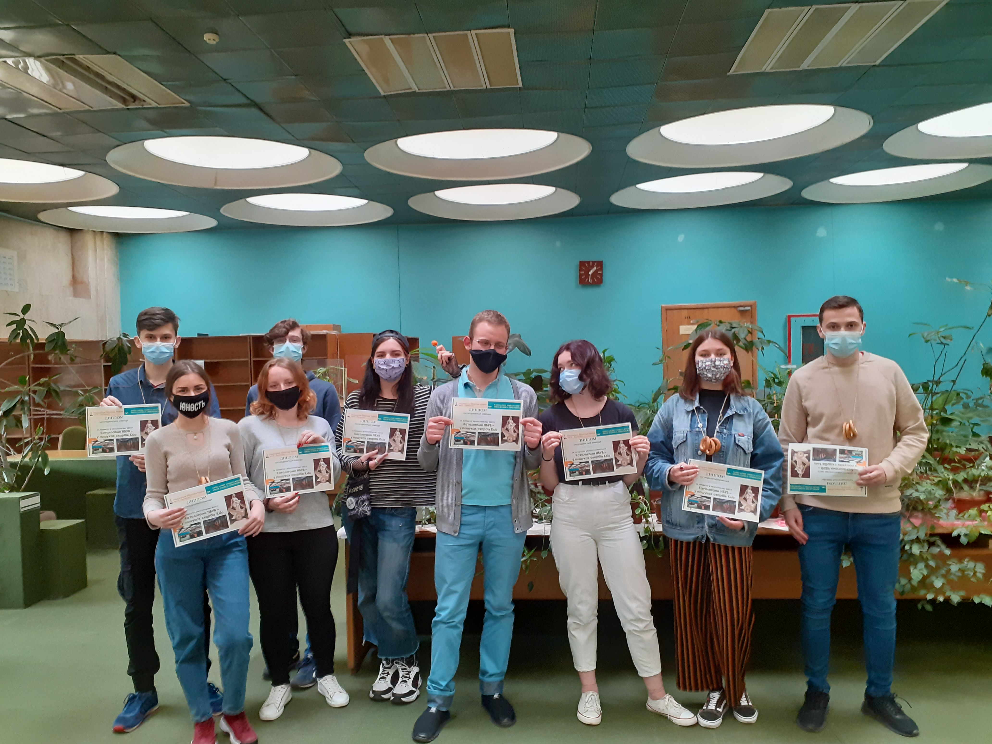 За програмою бібліотечно-документознавчої практики студенти II курсу 31 травня стали учасниками бібліотечного квесту «Каталогами НБУВ – у пошуках скарбів Кліо», що відбувся в центральному корпусі Національної бібліотеки України ім. В. І. Вернадського. Студенти розділилися на три команди – «Молоді науковці», «Літописці», Пінгвіни з Мадагаскару», отримавши завдання відшукати літературу на історичну тематику різного виду (монографія, дисертація, продовжуване видання, автореферат дисертації тощо) у каталогах бібліотеки й заповнити 12 бланків бібліотечного замовлення. Кожна команда працювала за власним маршрутом, користуючись наданим зразком і звертаючись за допомогою до керівників практики від бібліотеки. Практиканти захопилися роботою, і в результаті всі команди успішно впоралися з завданням. Перемогу здобула команда «Літописці», яка найбільш правильно та швидко виконала запропоновані задачі. Квест завершився аналізом виконаної студентами-практикантами роботи й відзначенням переможців, котрі отримали заохочувальні дипломи, й членів двох інших команд (символічними нагородами, що були передані капітанам).