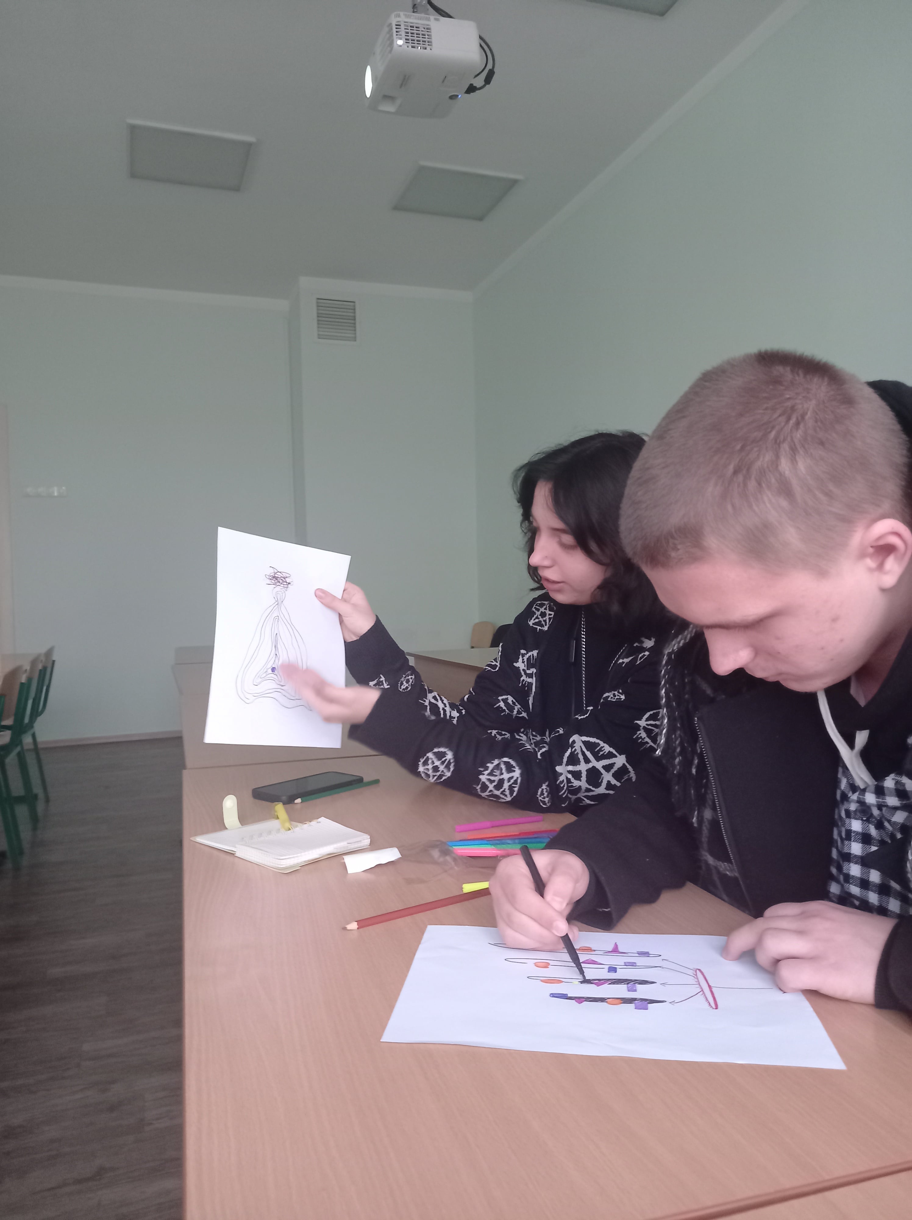 На початку засідання керівниця гуртка провела мінілекцію, у якій окреслила ключові аспекти сучасного розуміння міфу. Згодом студенти-філософи та журналісти долучилися до рефлексивного обговорення теми особистих символів, які вони мали змогу намалювати та осмислити. Цей творчий процес допоміг учасникам визначити актуальні виклики та ресурси для трансформації сучасних символів у майбутні.