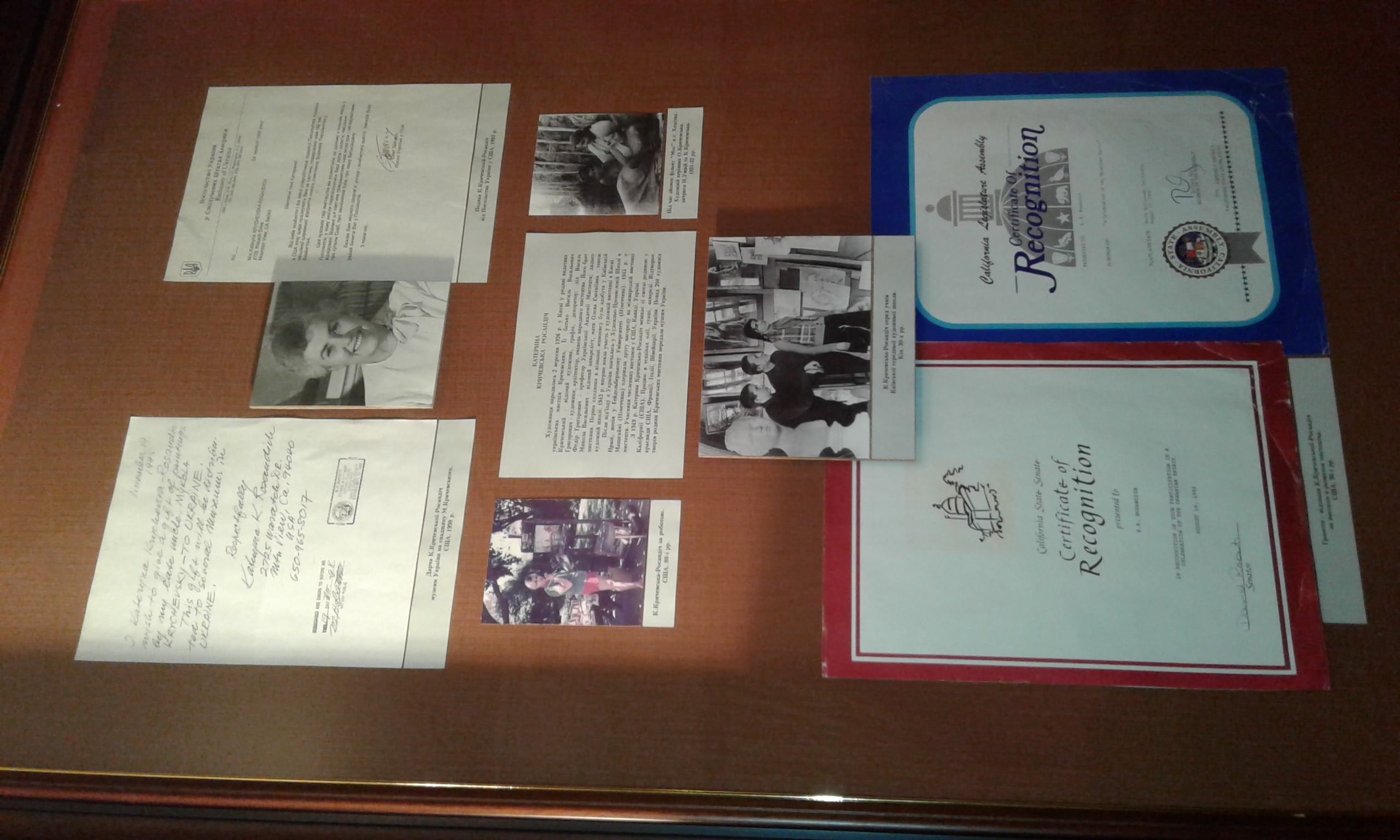 В експозиційних залах демонструються рідкісні фотографії, документи, картини, особисті речі визначних представників України, які мешкали поза її межами. Тут експонуються полотна Людмили Морозової, Олекси Булавицького, художні роботи родини Кричевських, скульптури Петра Капшученка, окремий меморіальний зал присвячений балетмейстеру і танцівнику Сержу Лифарю.