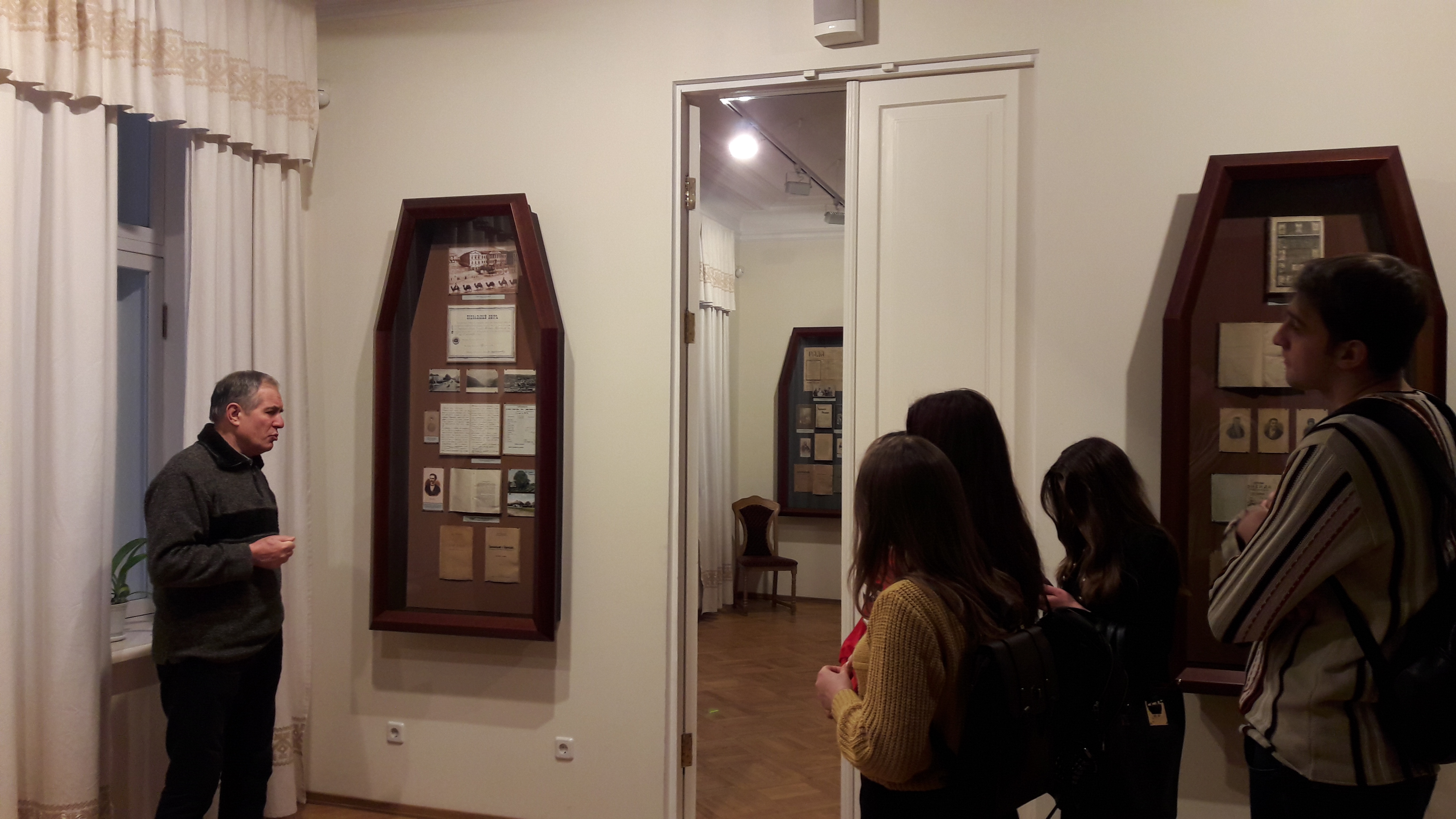 21 грудня 2018 р. група студентів істориків 4 курсу Історико-філософського факультету разом із к.і.н., доцентом кафедри історії України Тарасенко О.О., науковим керівником студентського історичного гуртка «Енігма», у рамках вивчення курсу «Українська історіографія» відвідали тематичну експозицію Історико-меморіального музею Михайла Грушевського.
