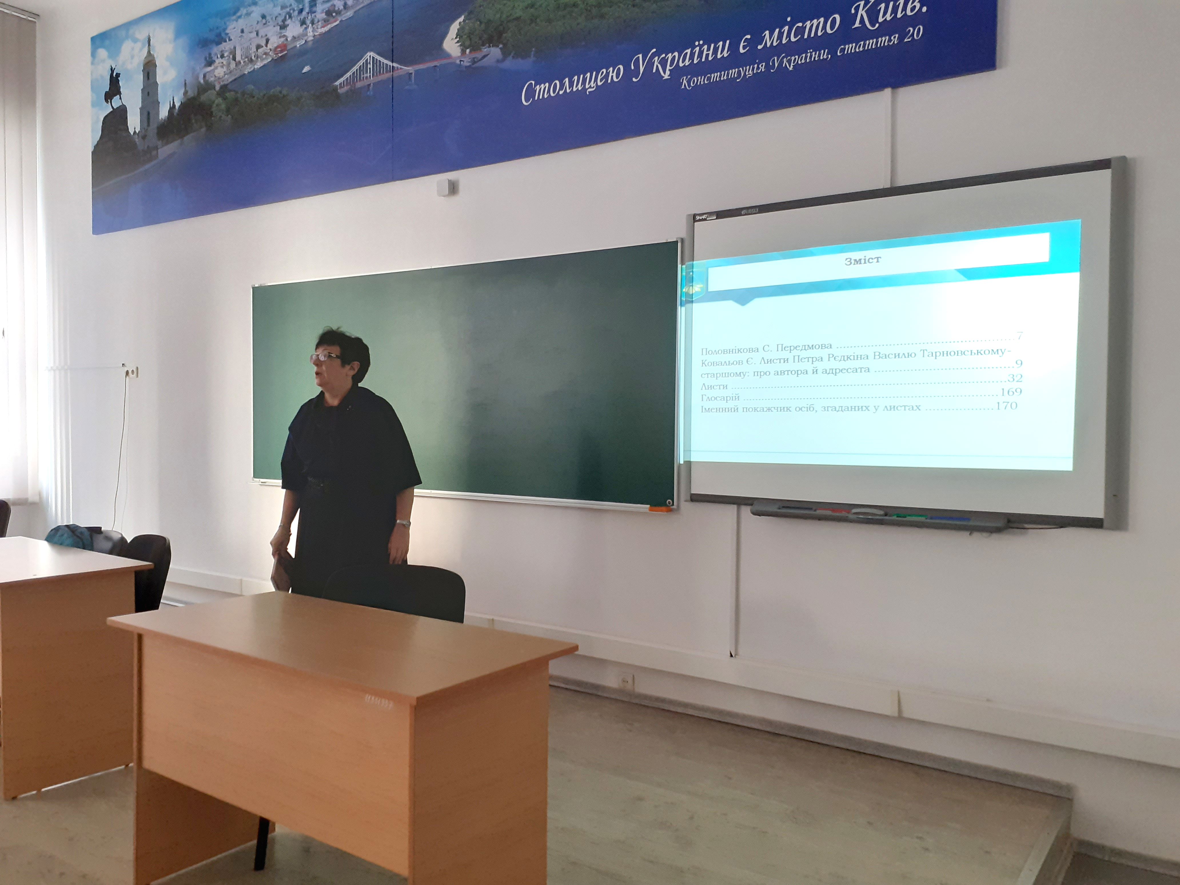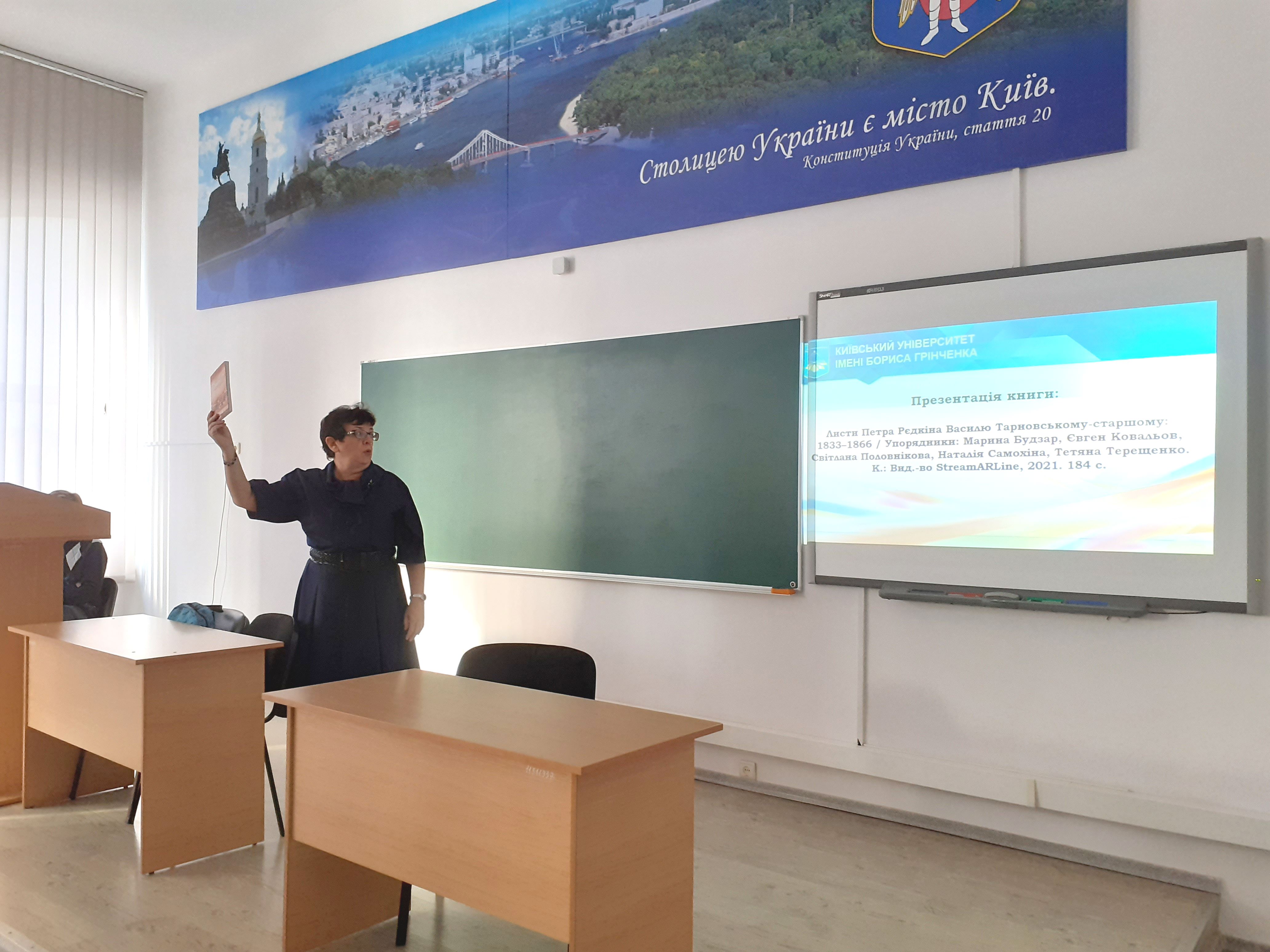 4 жовтня студентам першого курсу спеціальності «Історія та археологія» було репрезентовано видання «Листи Петра Рєдкіна Василю Тарновському-старшому: 1833–1866» – результат спільного проєкту викладачів і студентів кафедри історії України Історико-філософського факультету Київського університету імені Бориса Грінченка й наукових співробітників Чернігівського обласного історичного архіву ім. В. В. Тарновського. Ця публікація містить 30-річне листування російського урядовця українського походження, науковця-юриста, педагога Петра Григоровича Рєдкіна (1808–1891) з українським землевласником, громадським діячем і добродійником Василем Васильовичем Тарновським-старшим (1810–1866), що є видатною пам’яткою культури й важливим історичним джерелом. Епістолярний комплекс зберігається у фондах ЧОІМ.