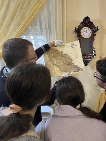 Ця подія стала не лише корисною практикою, а й прекрасним прикладом сталості поколінь. Екскурсію архівом проводив Марко Йосипович Мілютін, головний спеціаліст сектору просвітньої та виставкової роботи відділу використання інформації документів та комунікацій ЦДАМЛМ та випускник нашої кафедри. Марко, магістрант другого курсу спеціалізації «Історична урбаністика», поділився зі студентами практичними аспектами роботи з архівними матеріалами, передаючи свій досвід і натхнення.