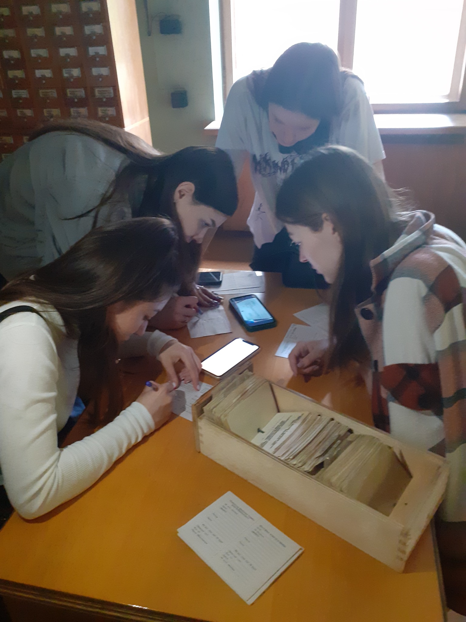 11 червня у стінах головного корпусу Національної бібліотеки України імені В.І. Вернадського студенти оволодівали навичками роботи з каталогами. Керівники практики О. Яковенко та Л. Коновал провели зі студентами квест, запропонувавши їм розділитися на дві групи та виконати низку завдань, а саме – знайти історичну літературу у різних каталогах (тематичному, авторефератів і дисертацій, періодичних видань тощо) і заповнити картки замовлення. Дві команди – «Жовтий автобус» і «Червоний автобус» –подолали перепони нової для майже всіх присутніх роботи. Автобуси успішно дісталися пункту призначення – моменту підведення підсумків і нагородження команд.