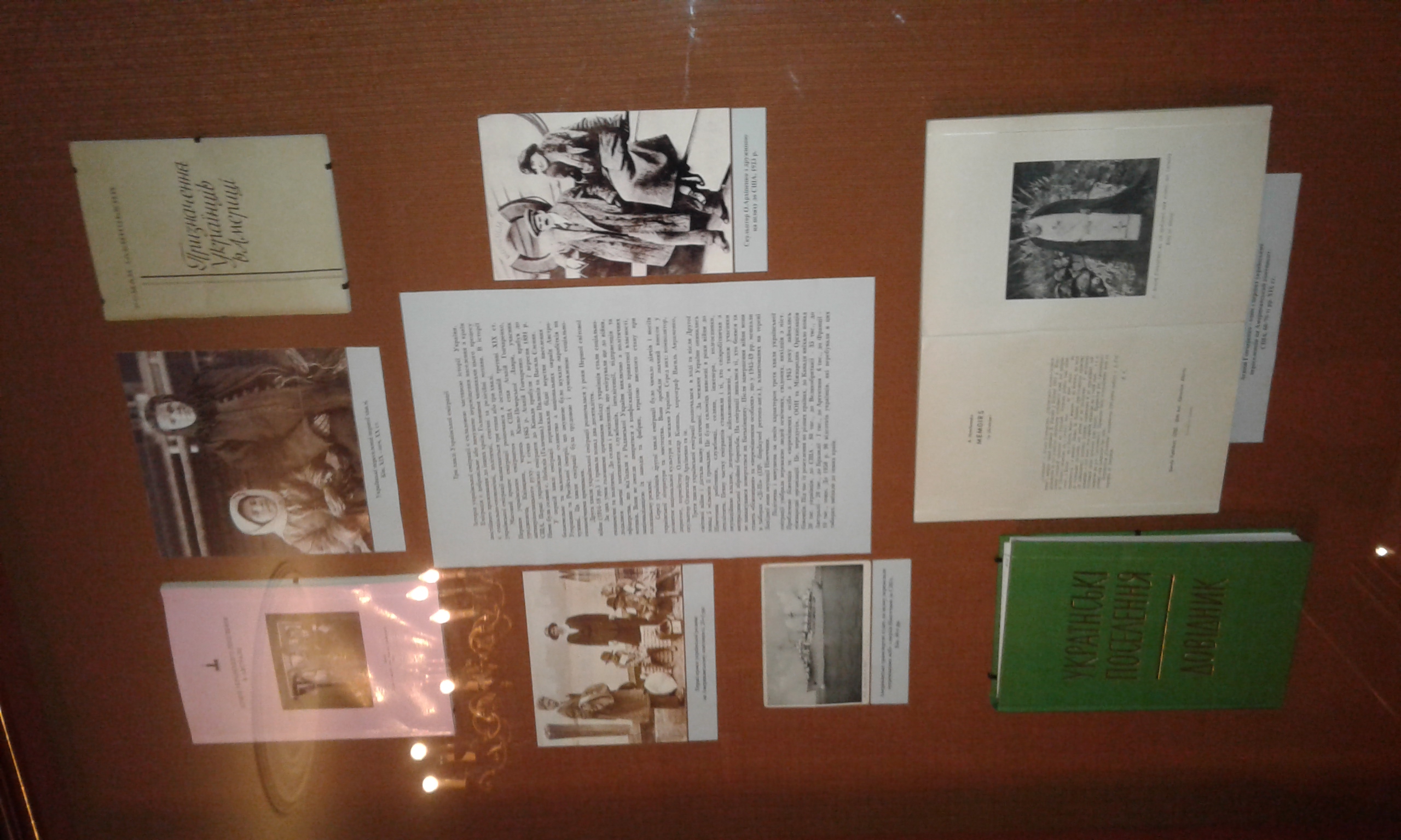 В експозиційних залах демонструються рідкісні фотографії, документи, картини, особисті речі визначних представників України, які мешкали поза її межами. Тут експонуються полотна Людмили Морозової, Олекси Булавицького, художні роботи родини Кричевських, скульптури Петра Капшученка, окремий меморіальний зал присвячений балетмейстеру і танцівнику Сержу Лифарю.