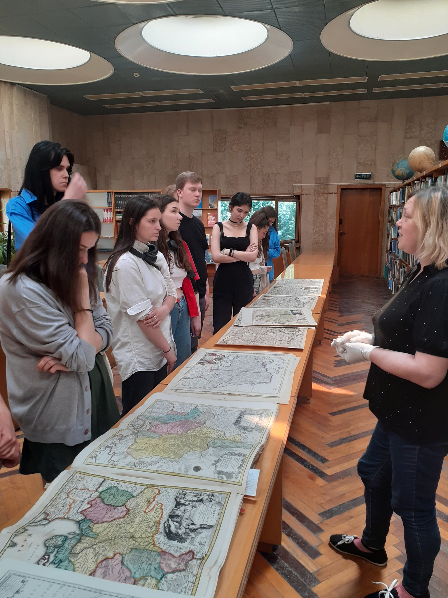 4 червня поточного року студенти-історики II курсу, які працюють на базі Національної бібліотеки України імені В. І. Вернадського за програмою бібліотечно-документознавчої практики під керівництвом провідних фахівців цієї установи – Людмили Коновал, завідувачки відділу технологій електронного науково-інформаційного обслуговування Інституту інформаційних технологій, кандидатки наук із соціальних комунікацій, та Олени Яковенко, завідувачки відділу теорії і методології бібліотечної справи Інституту бібліотекознавства, кандидатки історичних наук, ознайомилися з роботою структурних підрозділів НБУВ у корпусі на Голосіївському проспекті. Молодим людям розповіли про специфіку роботи з каталогами, про важливість праці з довідковими виданнями (цей відділ зацікавив студентів особливо, зроблені там світлини не постановочні), про роль мап у формуванні наших уявлень про Україну в світі та у розгортанні інформаційного протистояння в умовах російсько-української війни (працівниця відділу картографії змогла зацікавити всіх присутніх розглядом давніх картографічних матеріалів, що зберігаються в бібліотеці, привернувши увагу до особливих матеріалів, як-от мапа острова Зміїний початку XIX ст.). Робота другокурсників на практиці триває, їх очкують нові знайомства та нові відкриття.