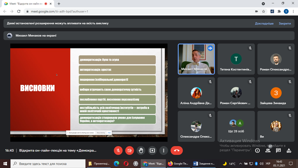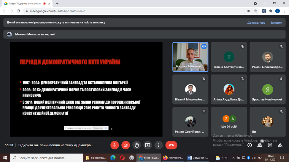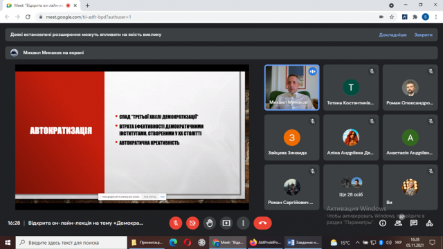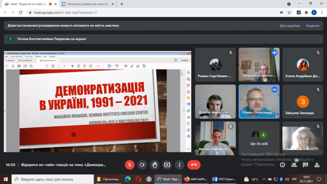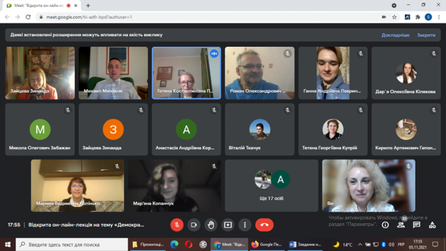 У п’ятницю 5.11.2021 о 16.00 відбулася відкрита он-лайн-лекція на тему «Демократизація в Україні, 1991 – 2021».