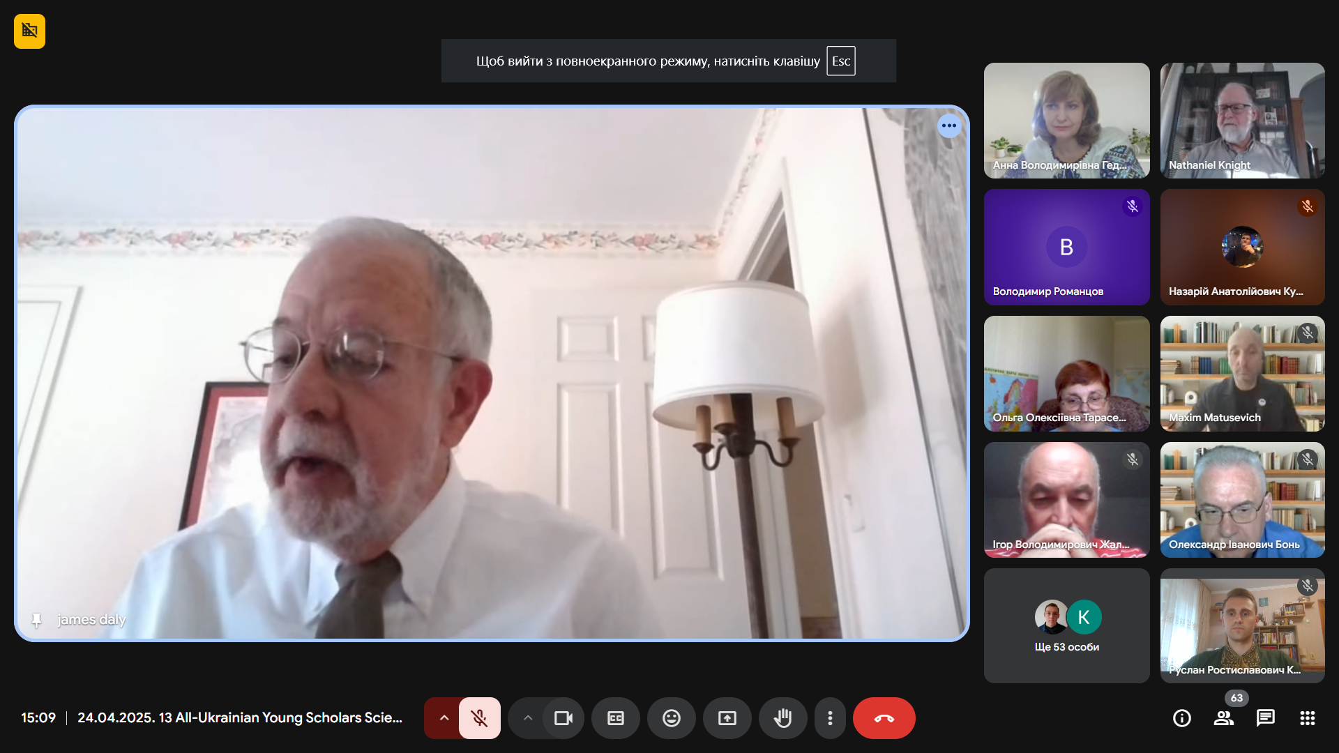 Джеймс К. Дейлі – доктор педагогічних наук, професор, професор кафедри педагогічних досліджень Коледжу розвитку людини, культури та медіа Університету Сетон Хол (Нью-Джерсі, США). Його тепле слово підтримки стало виявом щирої солідарності американських колег з українським народом у його боротьбі за свободу.