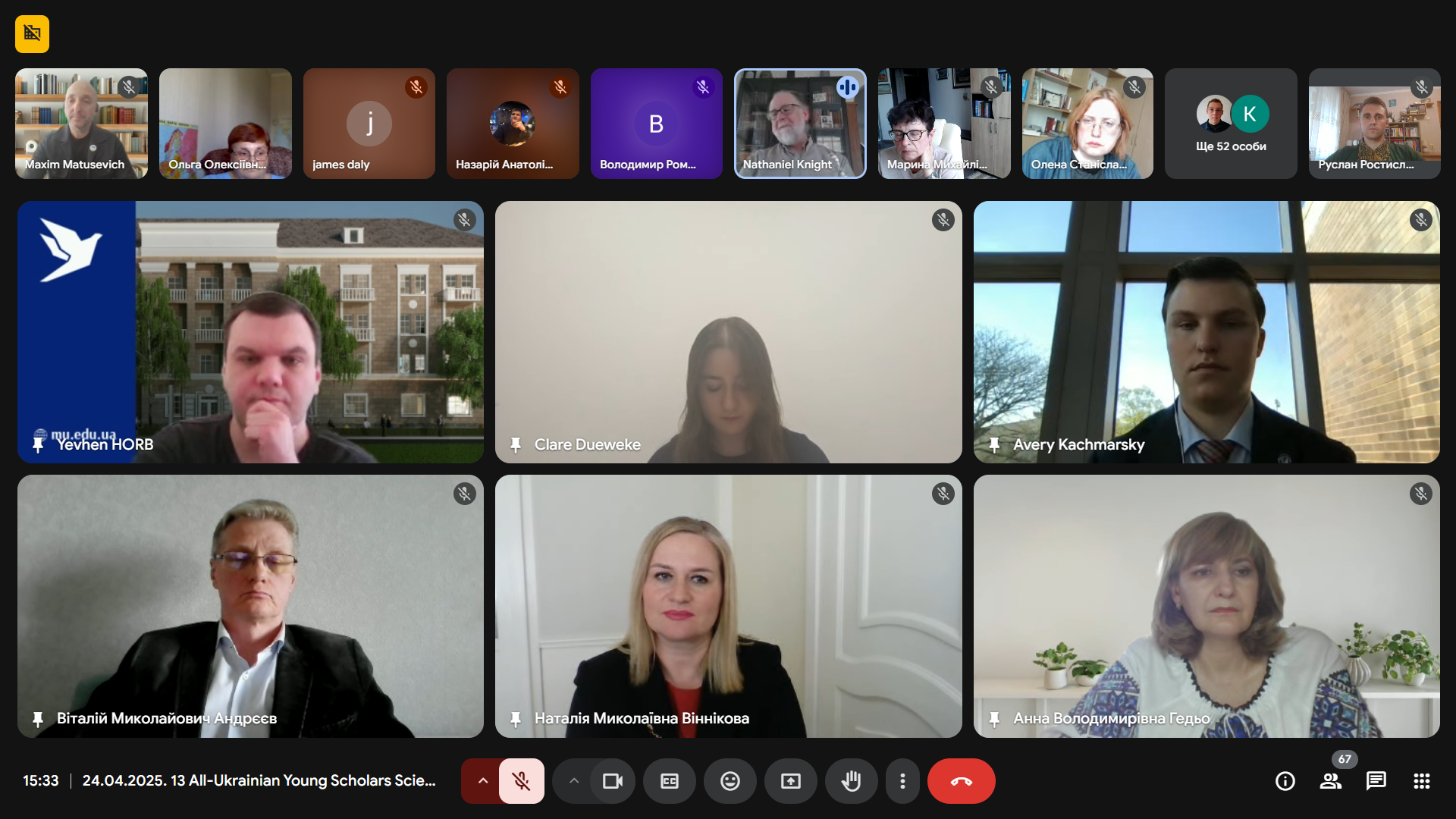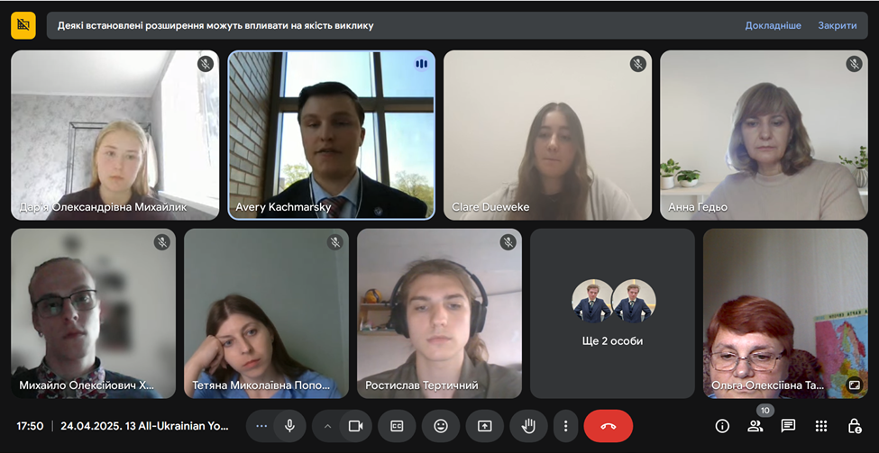 У роботі секції активну участь взяли студенти Школи дипломатії та міжнародних відносин Сетон Хол Університету, представивши цікаві та ґрунтовні дослідження з актуальних питань. Зокрема, Мадлен Крущинскі зосередилася на аналізі «Тактики Росії у придушенні суверенітету України», Авері Качмарський присвятив свою доповідь темі «Стійкість у Криму: історія кримських татар», Клер Дьювек розкрила тему «Геополітична головоломка: піднесення українського націоналізму», а Еллісон Бодакен дослідила питання «Релігія і російсько-українська війна». Їхні роботи стали цінним внеском у дискусію та продемонстрували високий рівень зацікавленості молодого покоління американських дослідників у вивченні складних історичних та політичних процесів в Україні.
