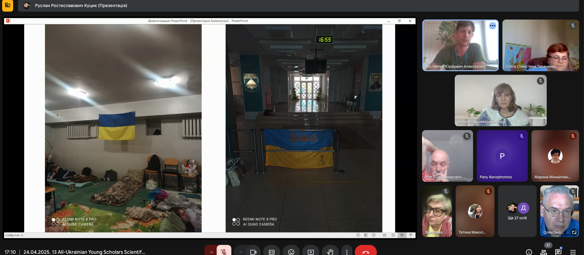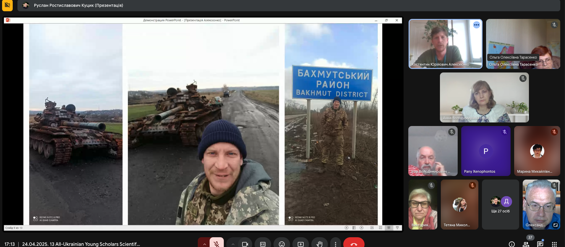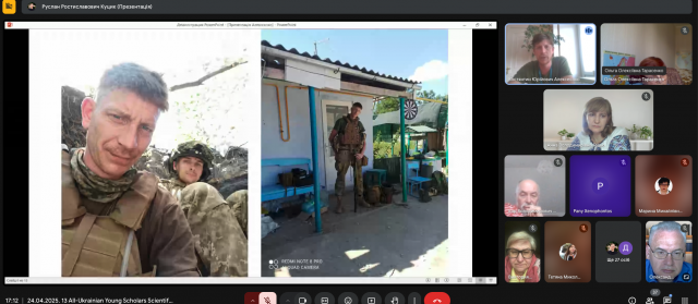 Особливе місце в пленарному засіданні посіла доповідь магістра Костянтина Алєксеєнка «Війна та цінності: за що ми боремося очима добровольця». У виступі Костянтина теоретичні роздуми поєдналися з потужним візуальним наративом завдяки світлинам, зробленим безпосередньо на передовій, – цим живим свідченням тих випробувань, з якими стикаються добровольці на фронті, тих цінностей, які їх мотивують. Зображення побратимів, окопів, зруйнованої техніки, миті відпочинку й зустрічі з цивільними – кожна фотографія розповідала свою історію про мужність, взаємодопомогу, любов до Батьківщини й прагнення захистити свій народ.
