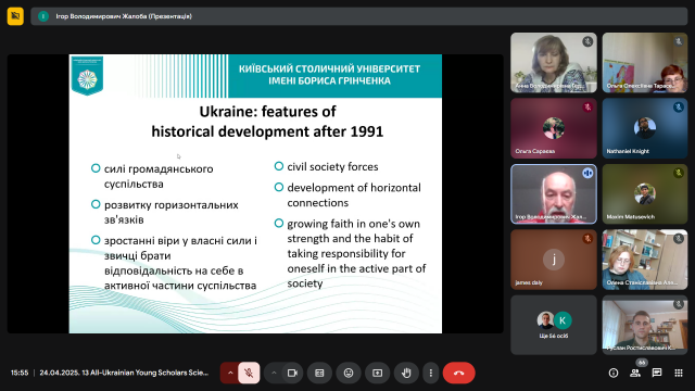 Київський столичний університет імені Бориса Грінченка 24 квітня 2025 року став місцем проведення ХІІІ Всеукраїнської науково-практичної конференції молодих учених із міжнародною участю «Українська минувшина: війни за ідентичність і незалежність». З болем у серці та непохитною вірою в перемогу науково-педагогічні працівники й студенти Університету Грінченка, інших вітчизняних вишів, симпатики України з зарубіжних університетів, усі небайдужі до історії та майбутнього нашої держави взяли участь у заході, підготовленому й проведеному кафедрою історії України Факультету суспільно-гуманітарних наук.