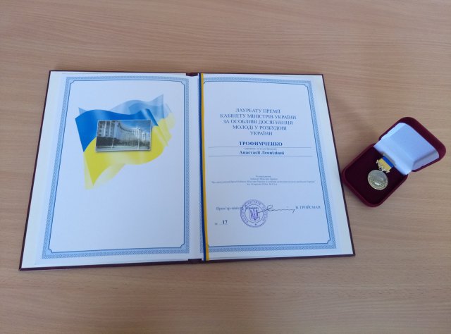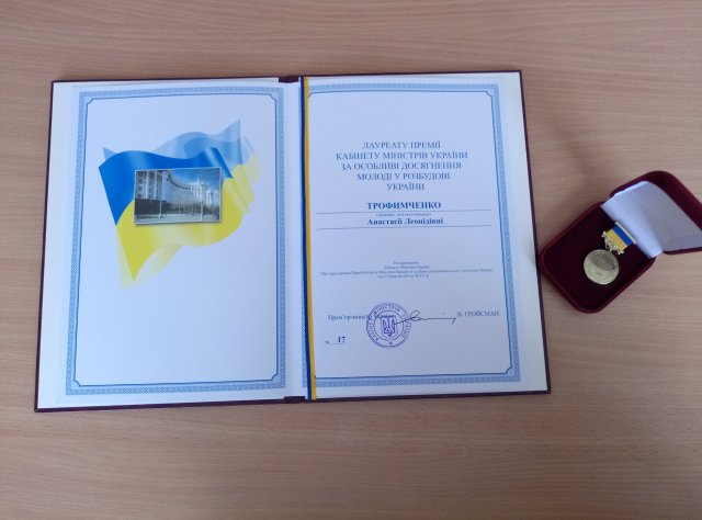 2 листопада відбулося урочисте врученняПремії Кабінету Міністрів України за особливі досягнення молоді у розбудові України. Під час нагородження лауреатів Прем'єр-міністр Володимир Гройсман зазначив: “Ви є справжніми лідерами, які ведуть за собою і роблять свій внесок у розбудову нашої держави. У різних сферах, у різний час ви хочете бути корисними для своєї країни, і в кожної людини це викликає і повагу, і довіру".
