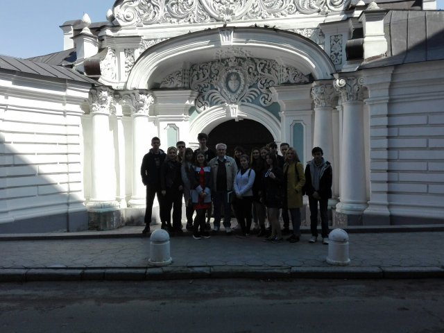 Ми із захопленням слухали розповідь про особливості формування архітектури міста, його будівлі, вулиці, храми, оборонні споруди, найдавніші архітектурні ансамблі: першу Десятинну церкву, Золоті ворота, Софію Київську, Михайлівський собор, Георгіївську церкву, Андріївську церкву тощо.