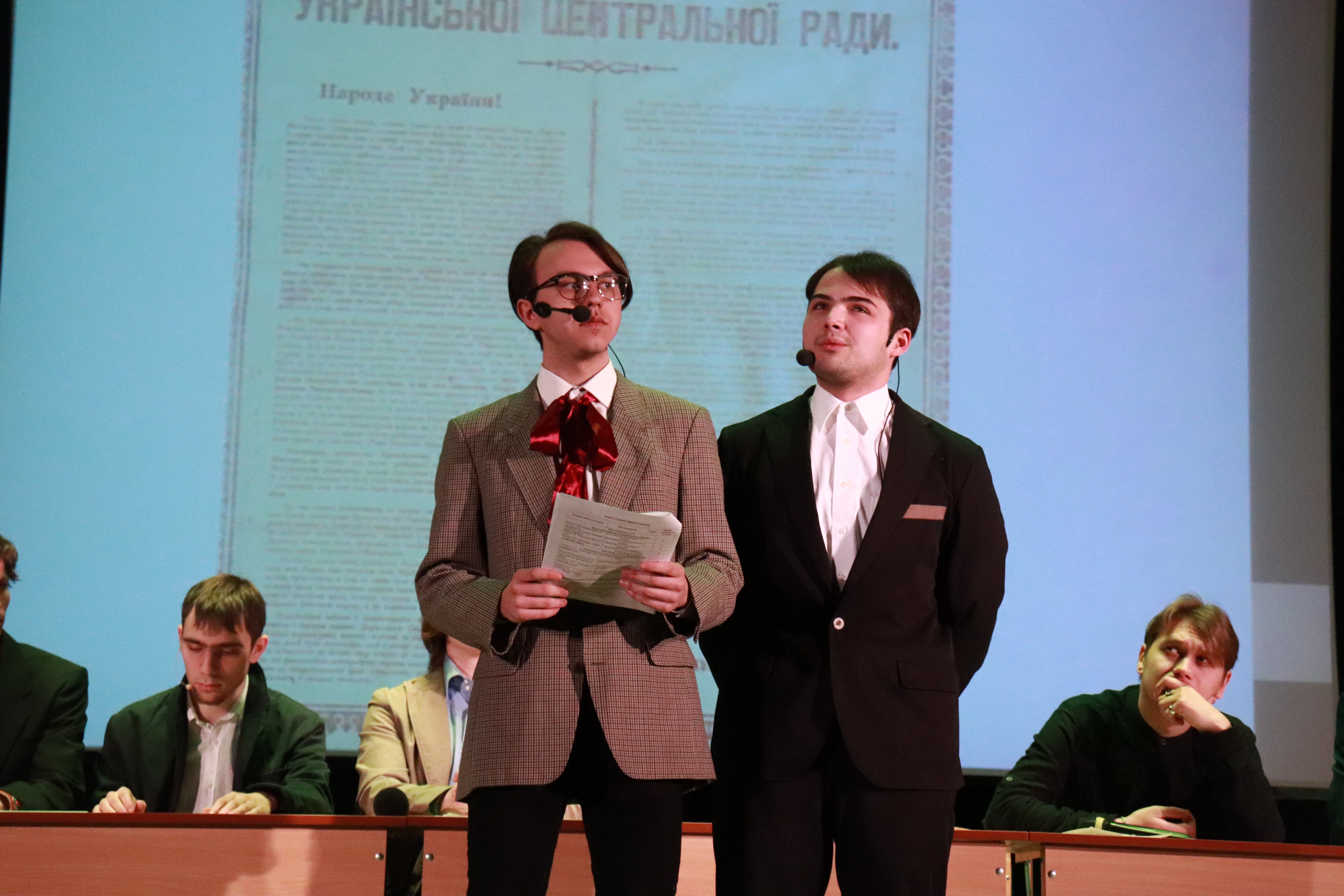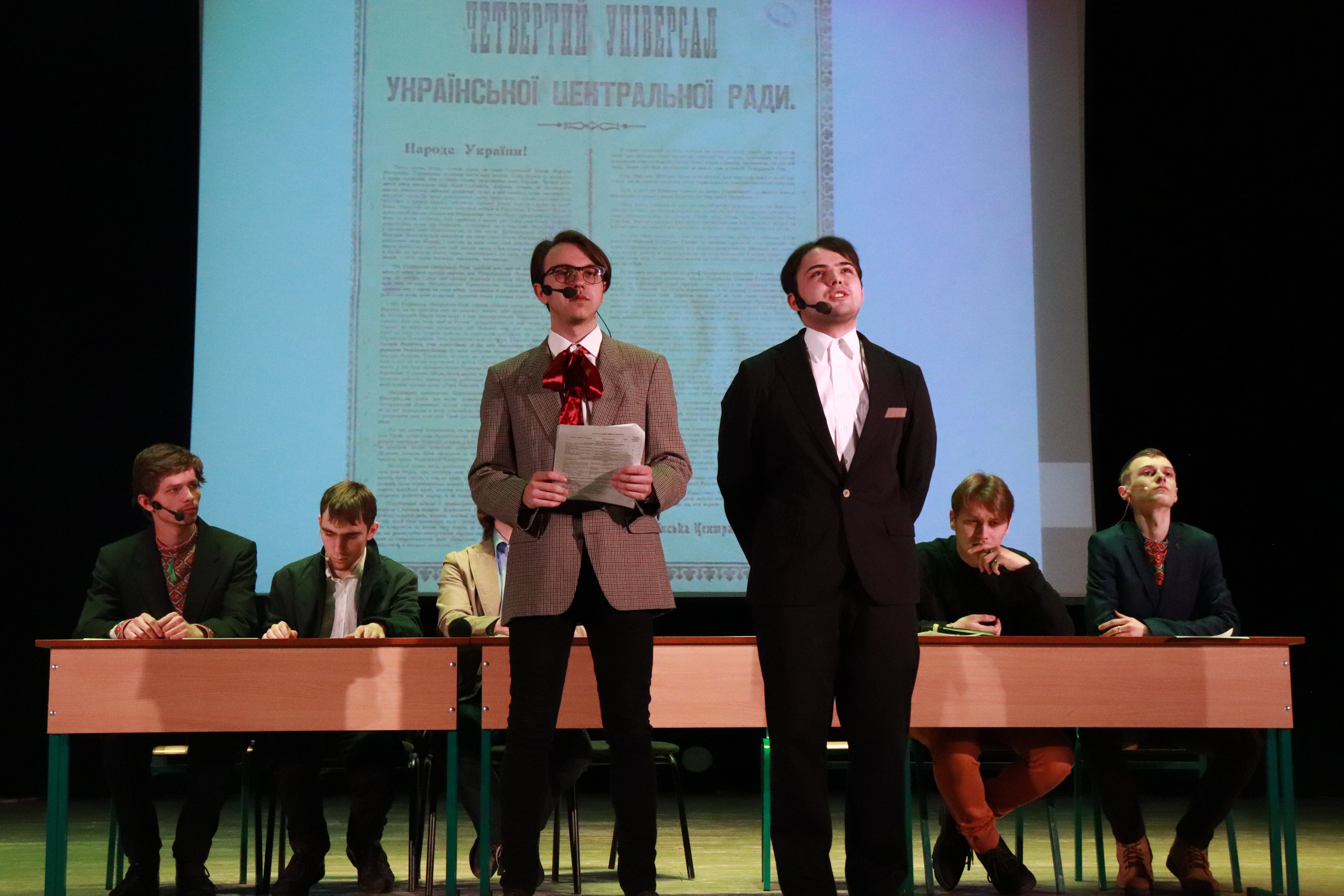 Історична реконструкція була організована таким чином, що усі присутні у залі відчули себе учасниками засідання Центральної Ради. Артистам театру «Борисфен» вдалося передати дух і настрій початку 1918 р.