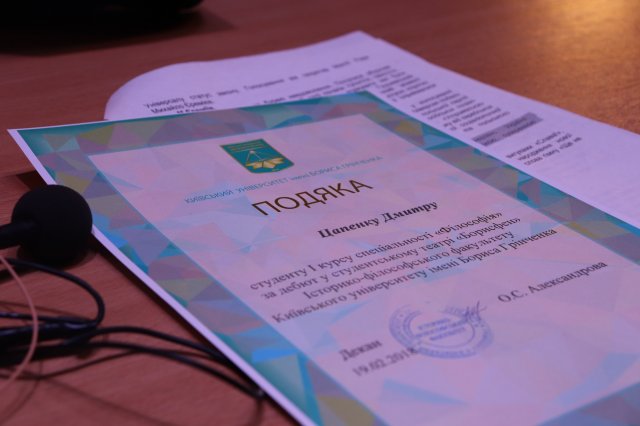 На Історико-філософському факультеті студентами театру «Борисфен» було здійснено 20.02.2018 р. історичну реконструкцію засідання Центральної Ради УНР, на якій 100 років тому було прийнято ІV Універсал. Значимість цього документу в тому, що у ньому проголошувалася незалежність України.