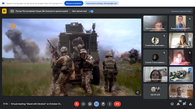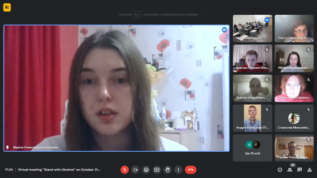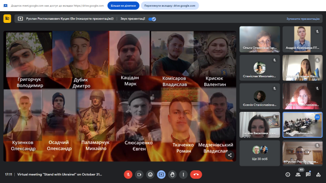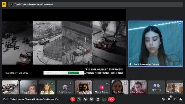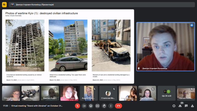Американські слухачі з величезною емпатією сприйняли розповіді наших студентів про окуповані міста та території, зацікавились демонстрацією фотоподій та згадок із особистих архівів здобувачів, історіями українських студентів-Героїв, що поклали своє життя, захищаючи Україну.